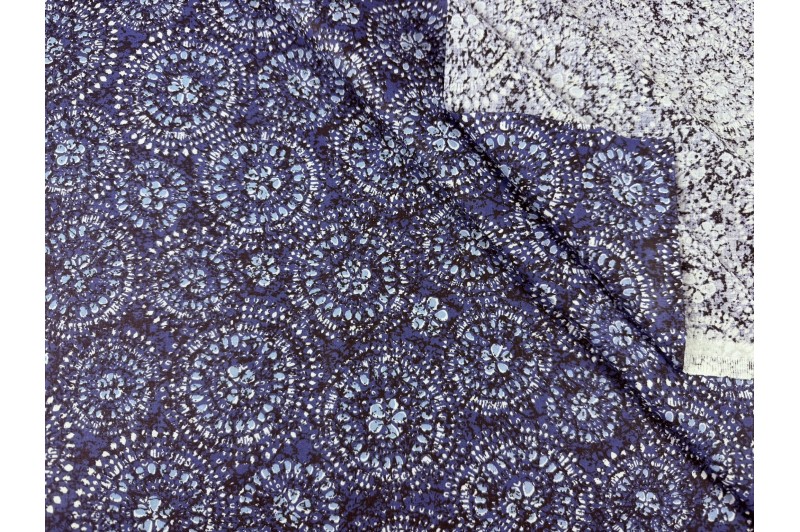 Coton fond marine imprimé graphique ciel et blanc.