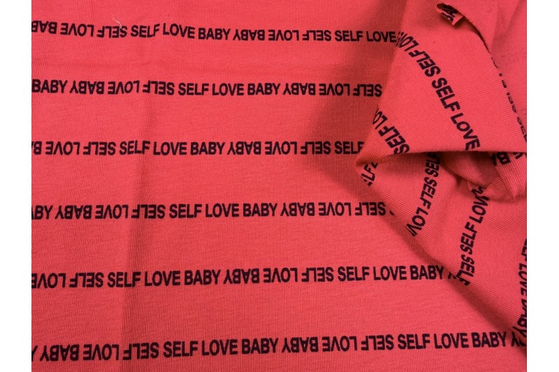 Jersey au touché très doux fond rouge inscriptions textes noirs.