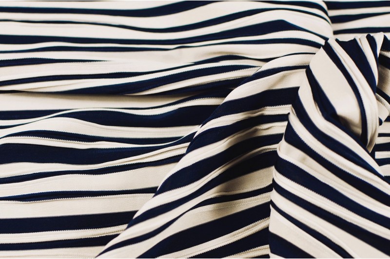 Maille bleu noir et écru présentant un léger relief .