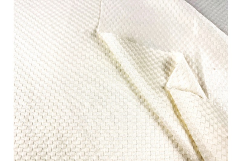 Elle a un aspect texturé avec un motif en relief rappelant un tissage en damier ou en quadrillage, ce qui lui confère une certaine structure.