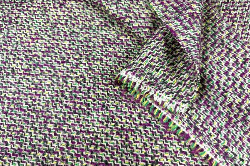 Lainage type Chanel Italien haut de gamme coloris Framboise, beige, vert, jaune, taupe.