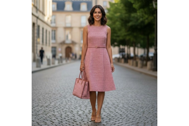 Tissu type Chanel coloris rose chiné.